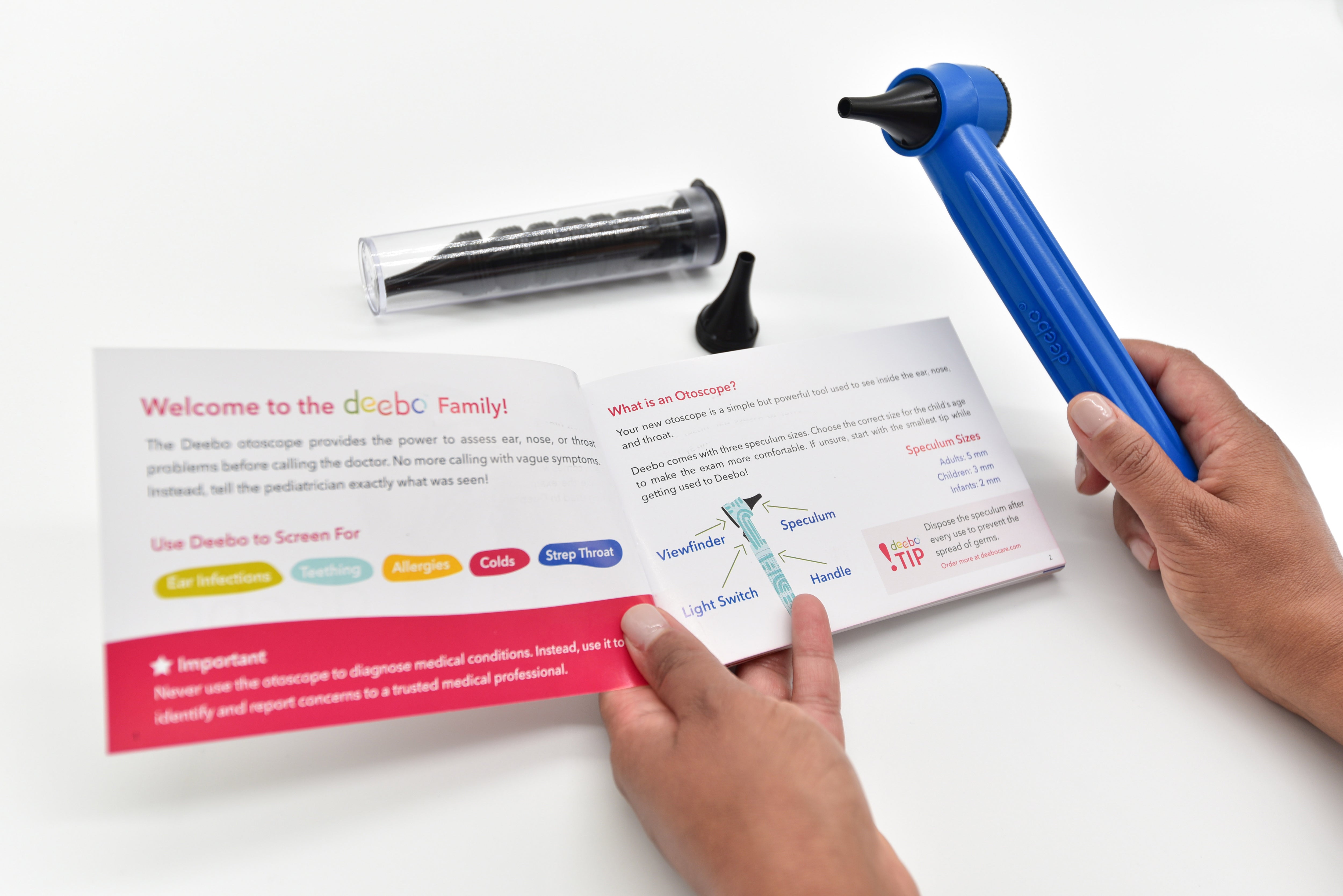 So excited to have the Deebo in our health kit for my toddler! she goes to daycare and has picked up many sicknesses over the years. I'm excited to have a tool similar to our pediatrician's as a first step in determining if I'm overly worried about a sickness / my child pulling at her ear or complaining that something is in her ear or if there looks to be something going on in the ear that would warrant me making an appointment. We also had several bouts of strep last year and I can see how the Deebo and its flashlight positioning will be great for examining the throat if I'm concerned about that in the future!